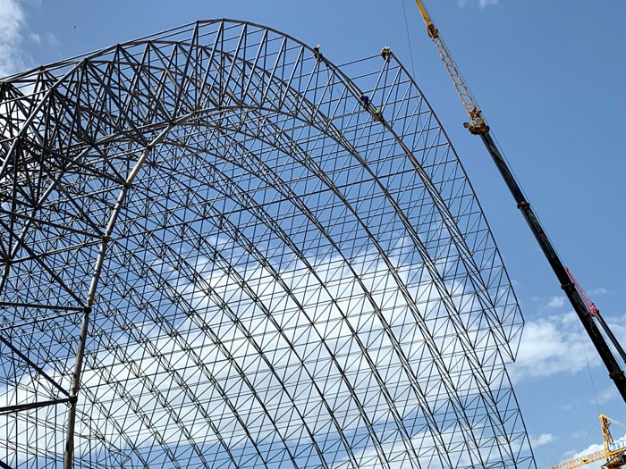 (2)网架加工前应对现场尺寸进行复测,确认无误后方可进行加工、安装;网架制作、运输、安装应遵守《空间网格结构技术规程》JGJ7-2010、《钢网架乌海螺栓球节点》JG/T 10-2009、《钢网架乌海螺栓球节点用高强度螺栓》 GB/T 16939-2016、《乌海钢结构乌海工程乌海施工规范》 GB50755-2012、《乌海钢结构乌海工程施工质量验收标准》 GB50205-2020。